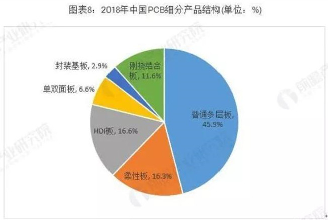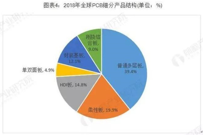 根據(jù)Prismark的統(tǒng)計(jì),2018年全球PCB細(xì)分產(chǎn)品的市場結(jié)構(gòu)如下: